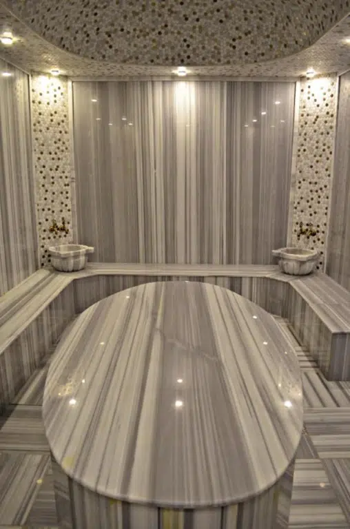 Step into the soothing embrace of our luxurious Turkish Bath, where centuries-old traditions of purification and relaxation come to life. Surrounded by elegant marble surfaces, bathed in the soft glow of ambient lighting, and enveloped in the gentle warmth of steam, this is an experience designed to refresh both body and soul.Whether seeking ultimate relaxation or revitalization, our Turkish Bath offers a sanctuary where ancient wellness meets modern luxury.